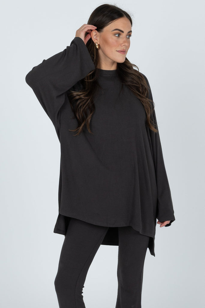 All Weekend Long Pant Set Long Sleeve Charcoal