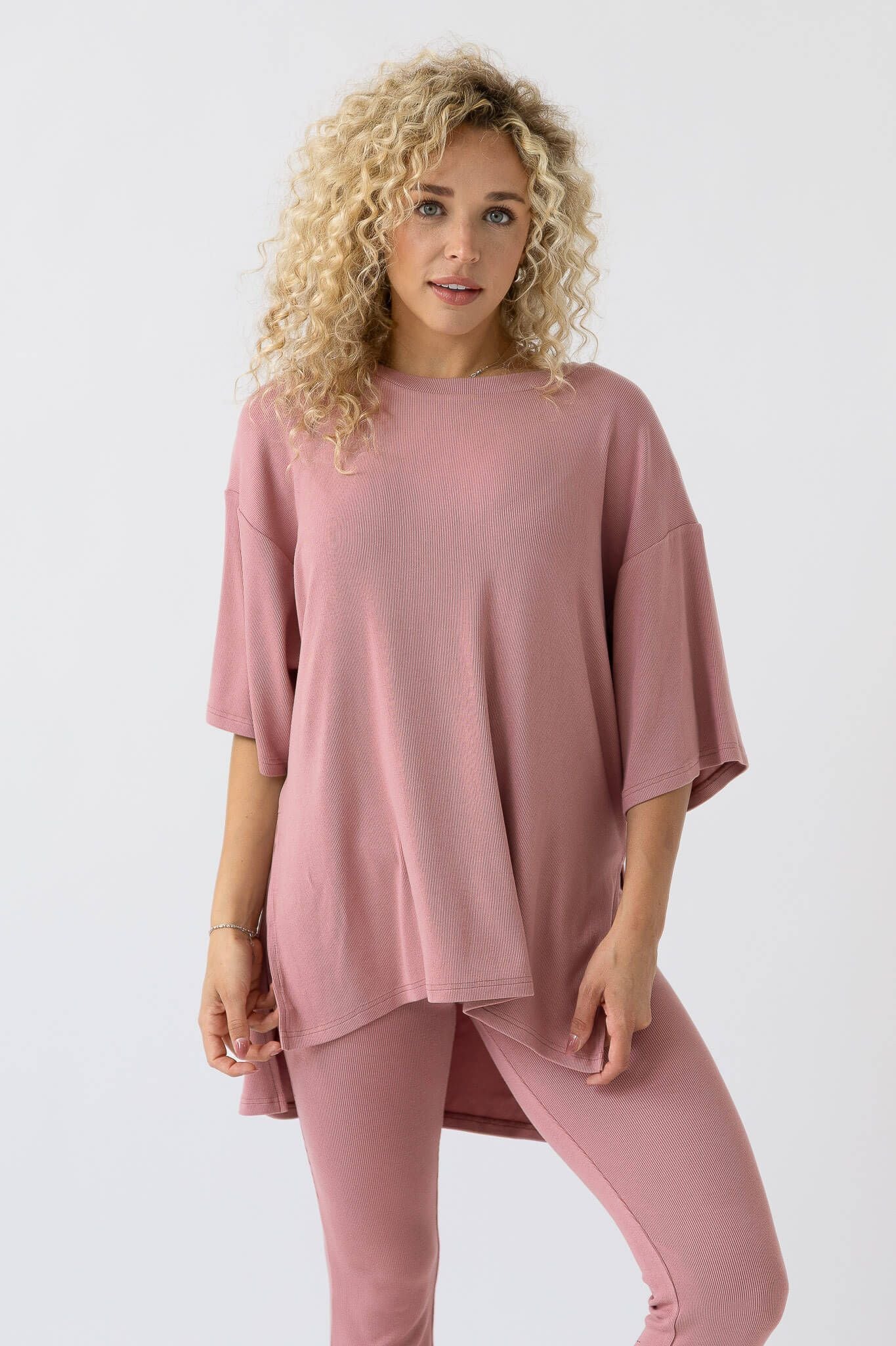 The All Weekend Long Set is now available in a new cut! The top features the 2 side slits, and the same material and oversized flowy siloute as the original All Weekend Long Short Set. The bottoms have the same high waisted fit, but are now a pant version!