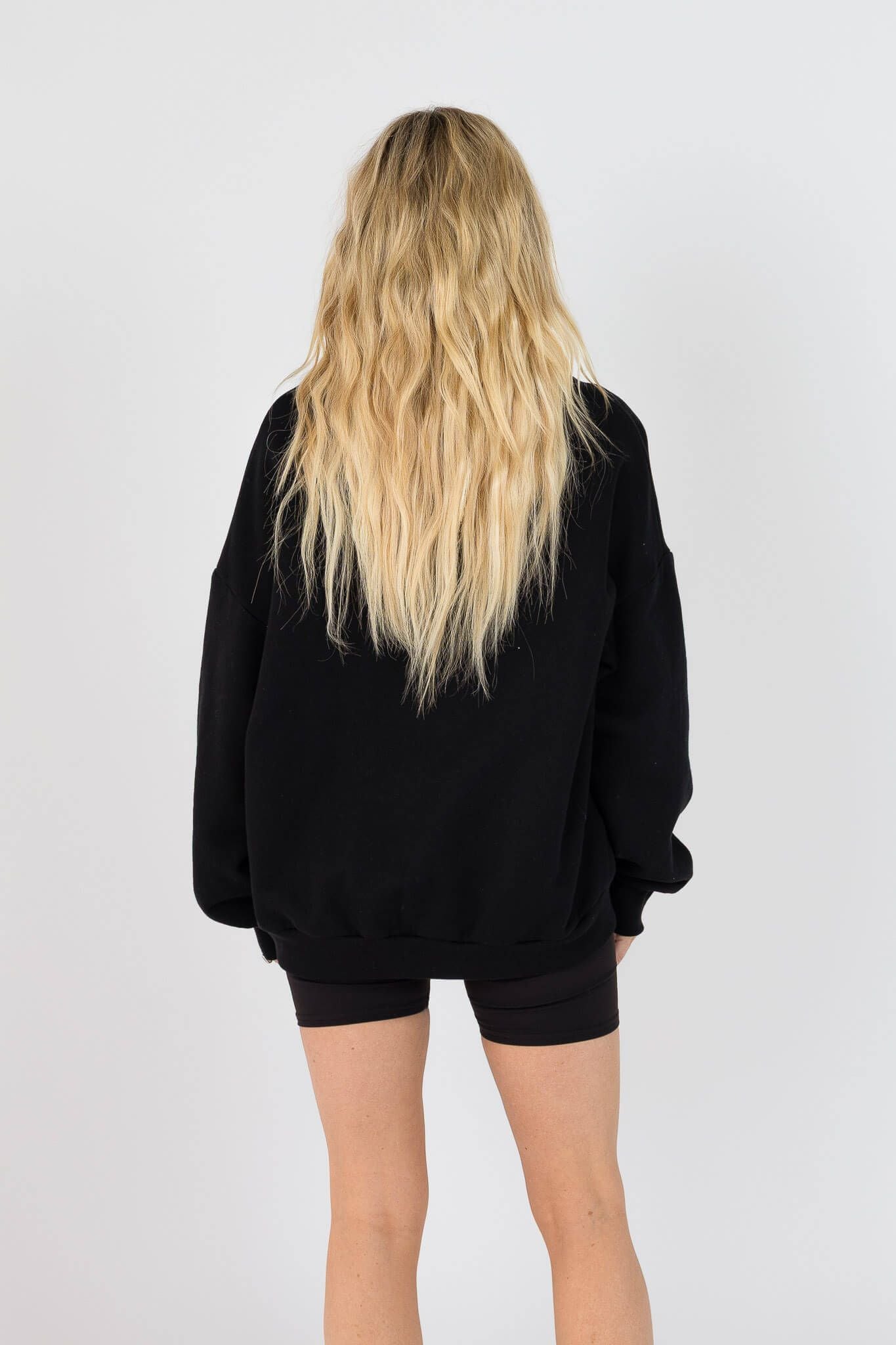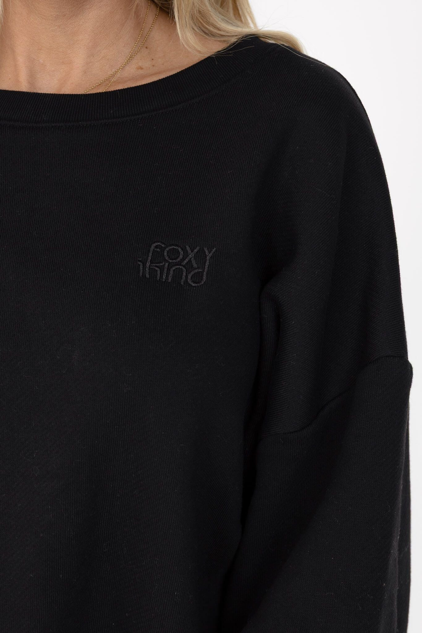 Our Coffee Run Set is the perfect set for your morning errands, work from home or evening at the movies. It features an oversized crew neck sweatshirt with a Foxy Kind embroidered logo and high waisted biker shorts.