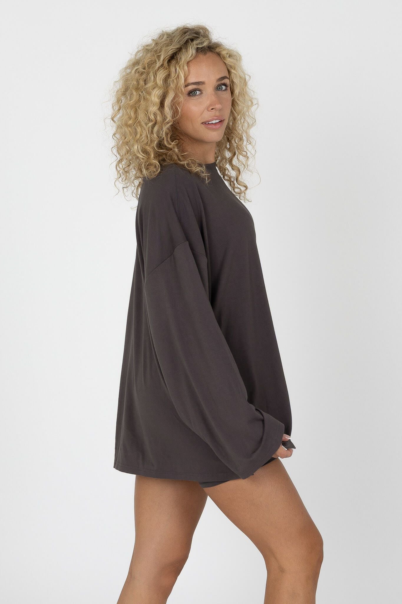 Our Found My Fav fabric in a brand new set! It’s soft and stretchy fabric that will feel as great as it looks. Perfect for running errands and everyday life, or a relaxed work from home outfit. The bottoms feature a biker short. The top features an oversized fit, with long sleeves.
