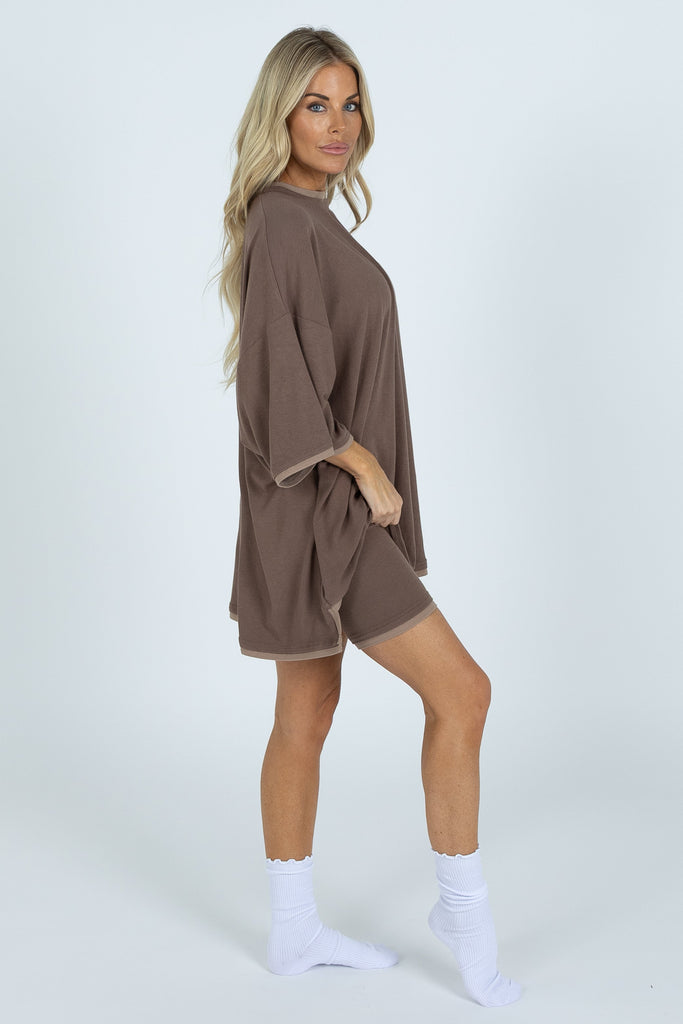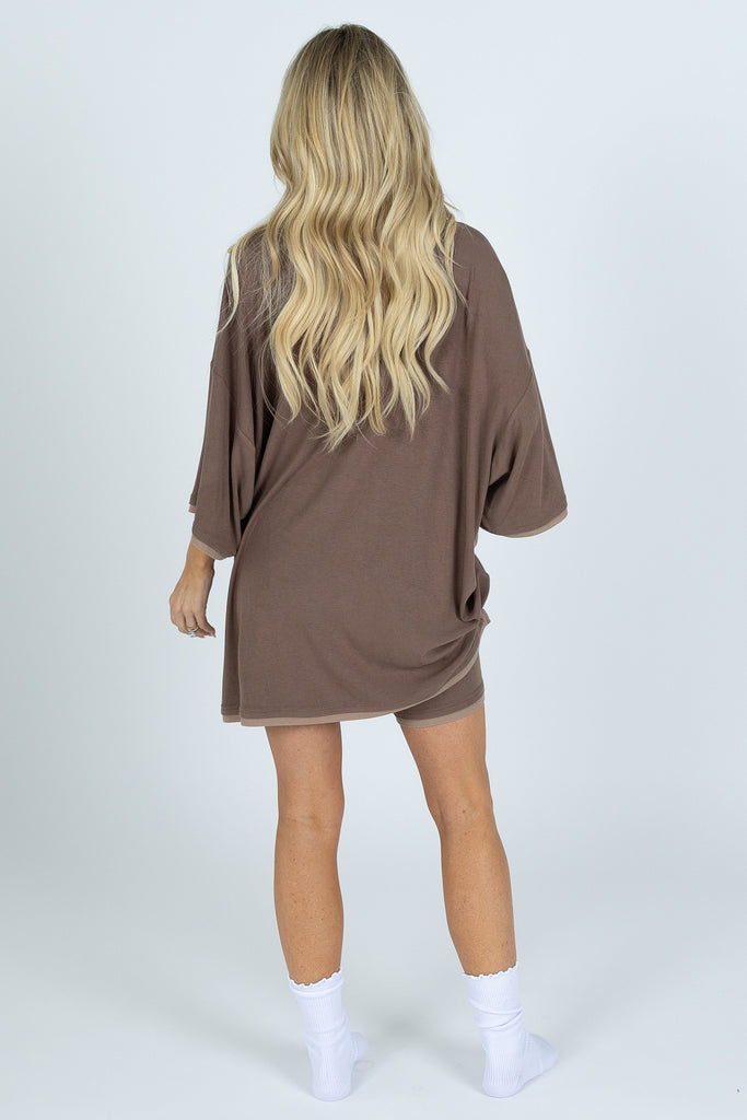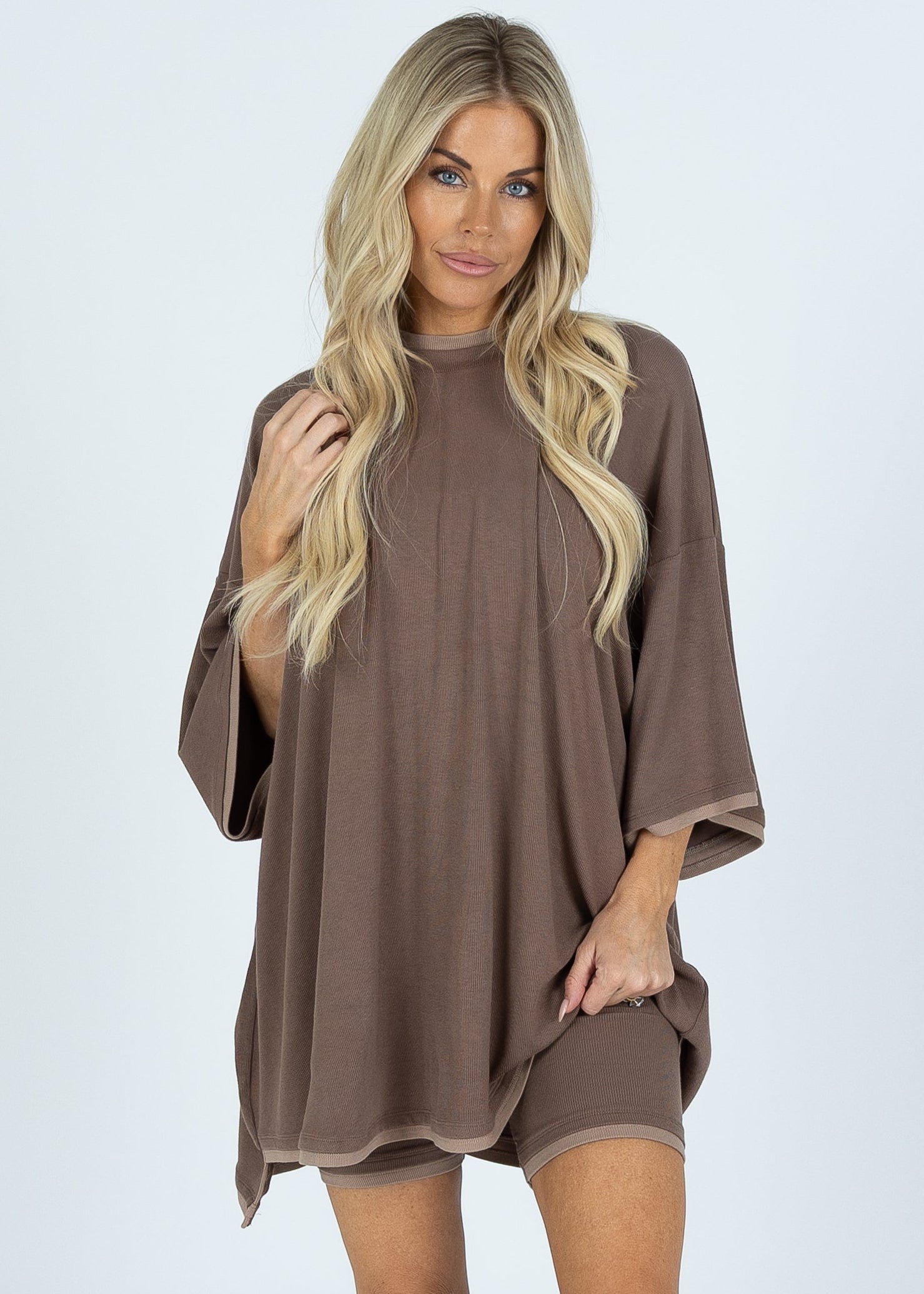 The set you have all been loving is here in a brand new style! You will be dressing this up for every occasion and dressing it down to wear around the house. This set was made for EVERYBODY. This oversized boyfriend tee comes with a pair of matching biker shorts. The material is soft, very stretchy and ribbed. The best part about these biker shorts is they do not cut into your waist, they lay flat in a flattering V cut. They are tight enough to hold you in, but loose enough to feel relaxed and comfortable. The relaxed fit of this outfit has made it a 10/10.