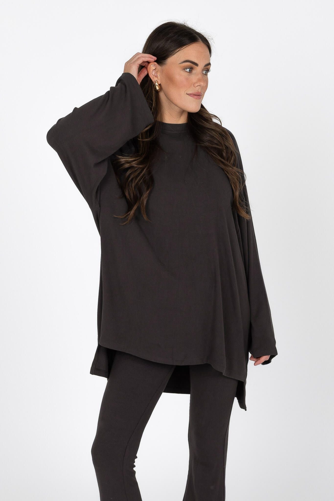 All Weekend Long Pant Set Long Sleeve Charcoal