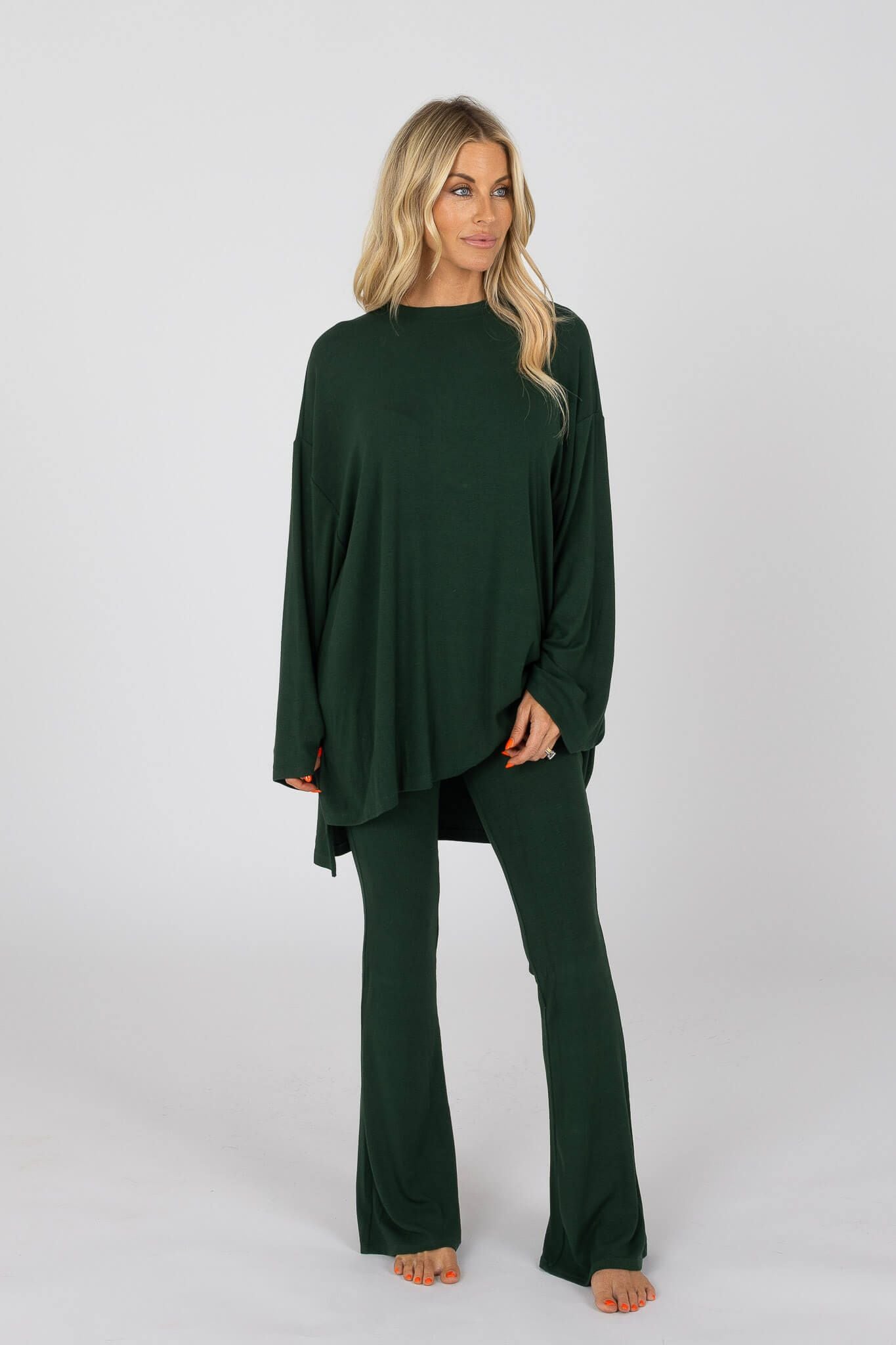 The All Weekend Long Set is now available in a new long sleeve long pant cut for Winter! The top features long oversized sleeves, and the same material and oversized flowy siloute as the original All Weekend Long Short Set Long Sleeve. The bottoms have the same fit as our All Weekend Long Pant Set!