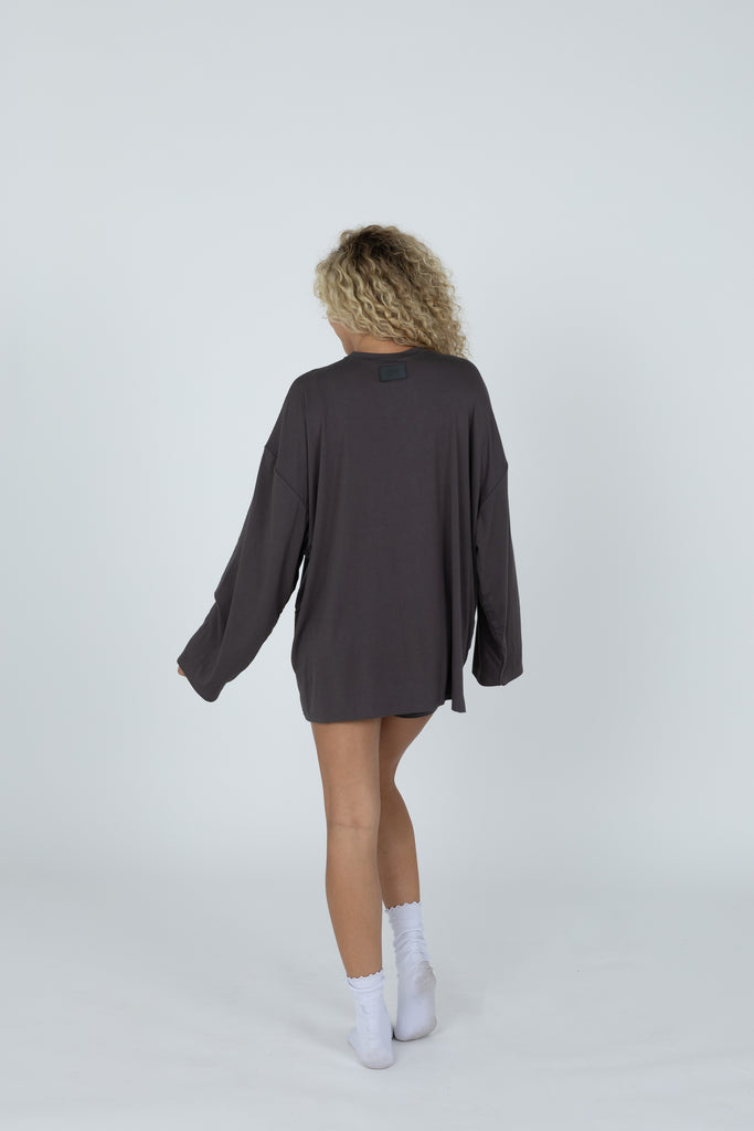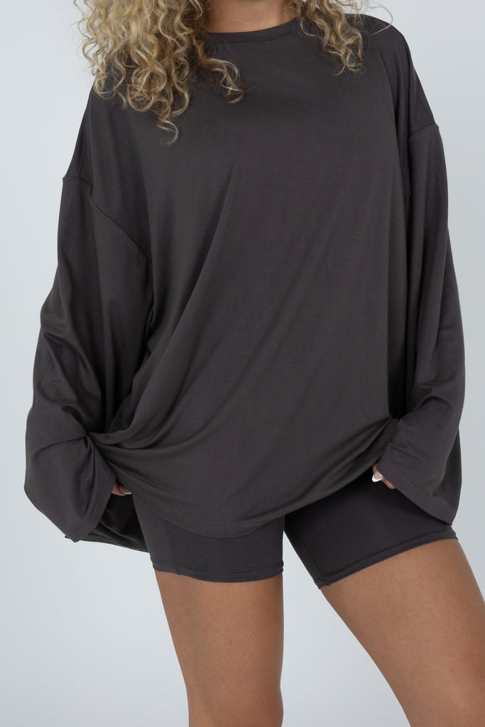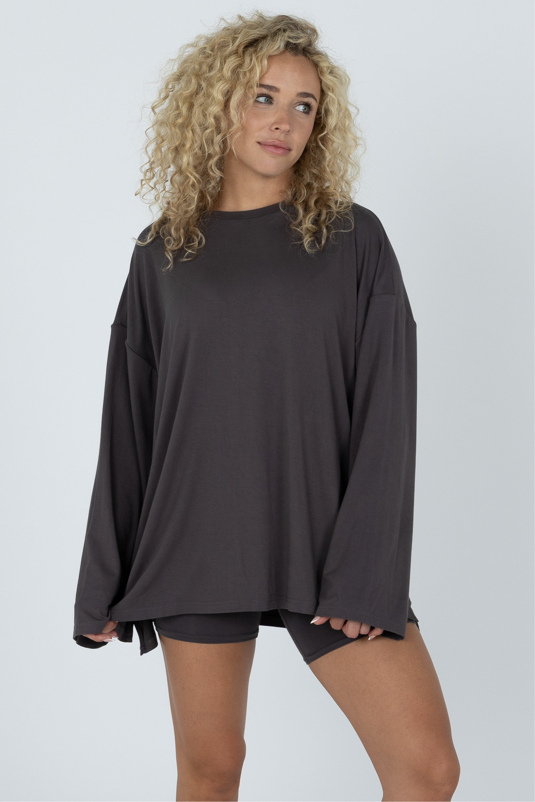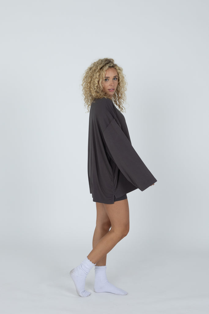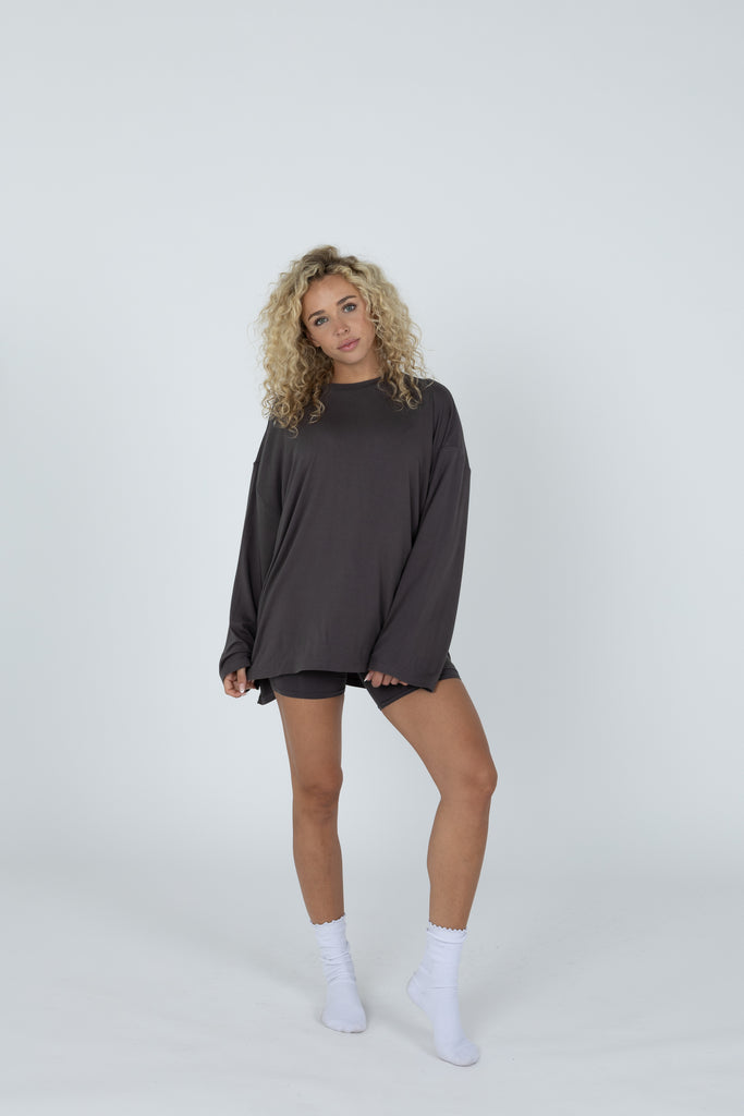 Our Found My Fav fabric in a brand new set! It’s soft and stretchy fabric that will feel as great as it looks. Perfect for running errands and everyday life, or a relaxed work from home outfit. The bottoms feature a biker short. The top features an oversized fit, with long sleeves.