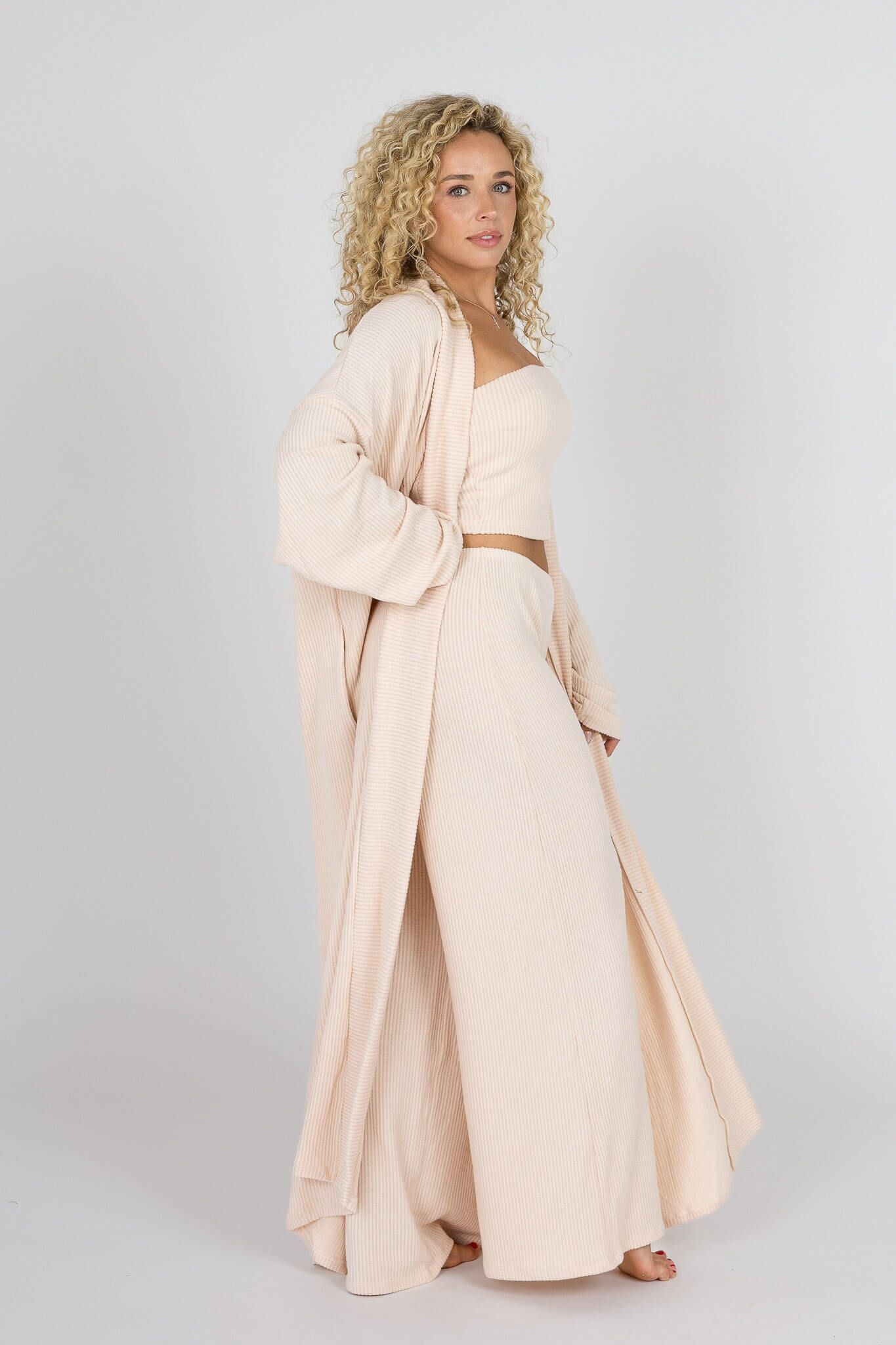 Our Yacht Club Pant Set is here in a tube top and oversized cardigan set. If you love some of our other best selling sets then you're going to love this! This set is ultra soft and comfortable. It features a ribbed fabric is softer than ever before. It has a nice light waist band with a loose flowy fit. The top features a two piece tube top that holds you in and feels so comfortable, with a long oversized flowy cardigan. We made the set so that everyone can look as great as they feel!